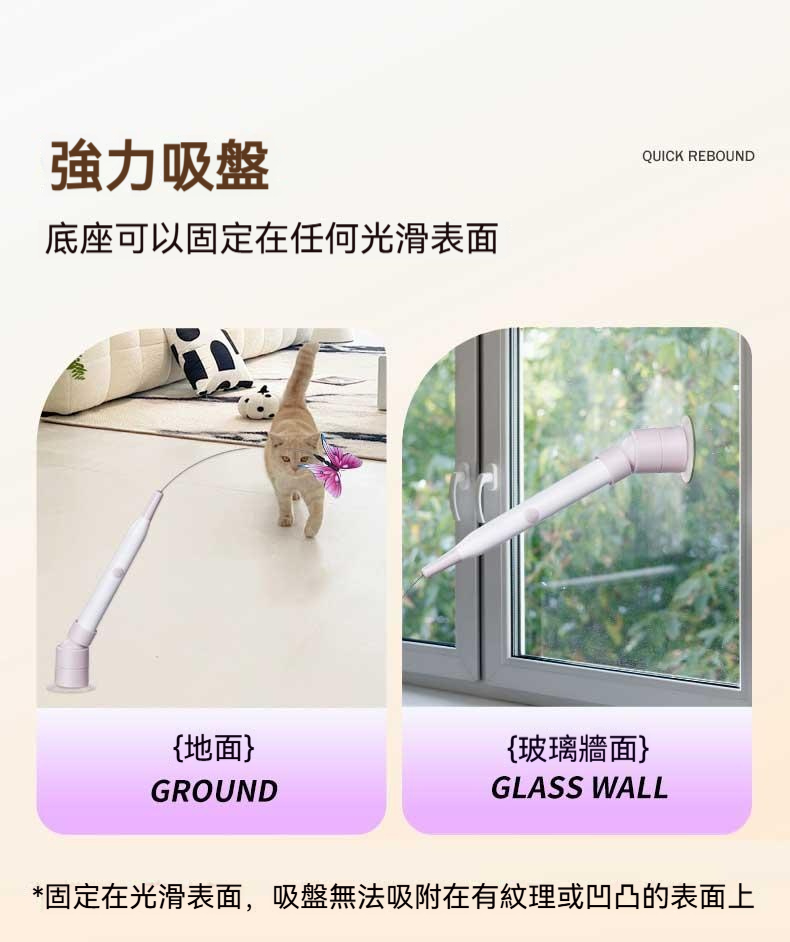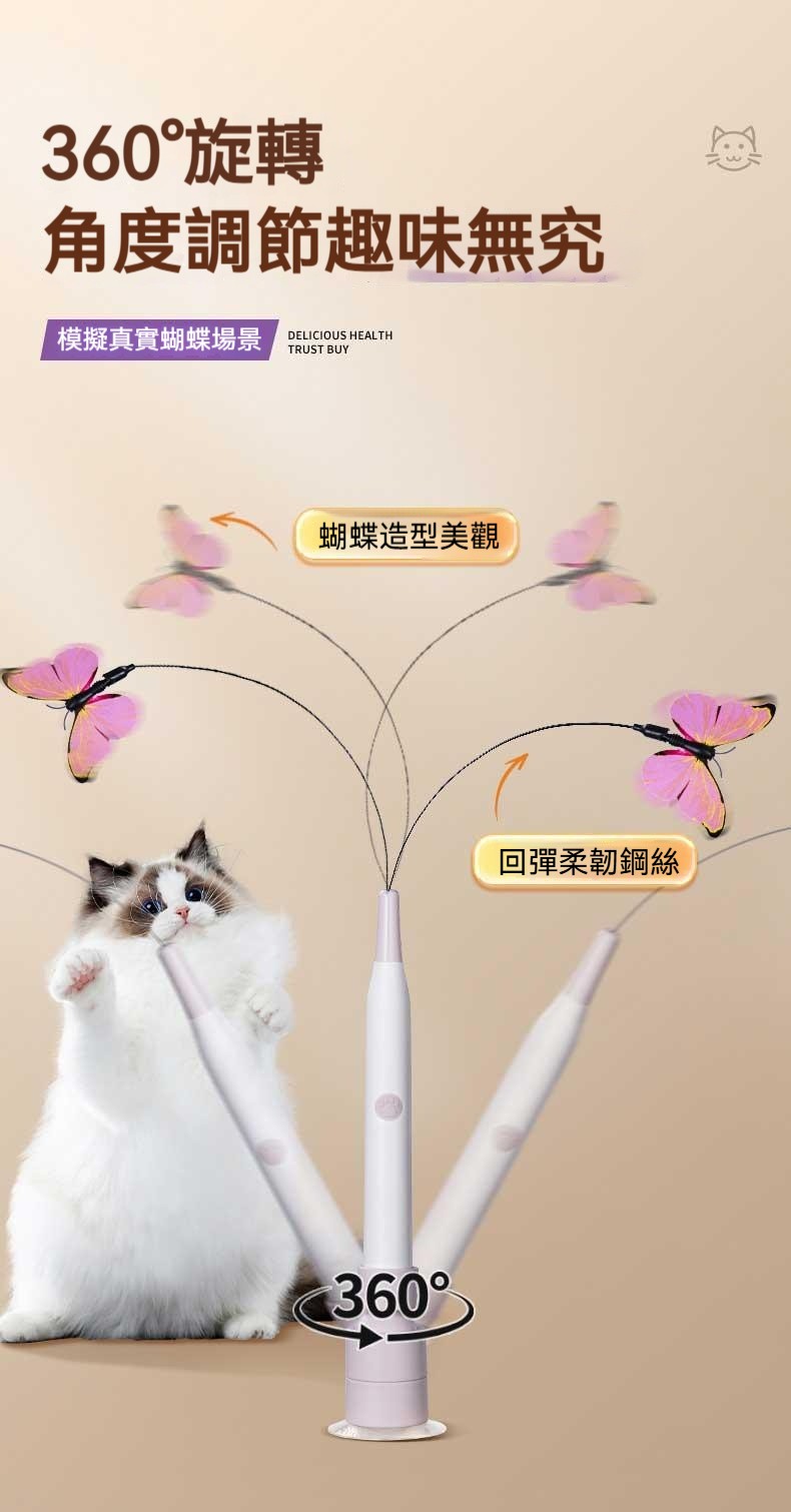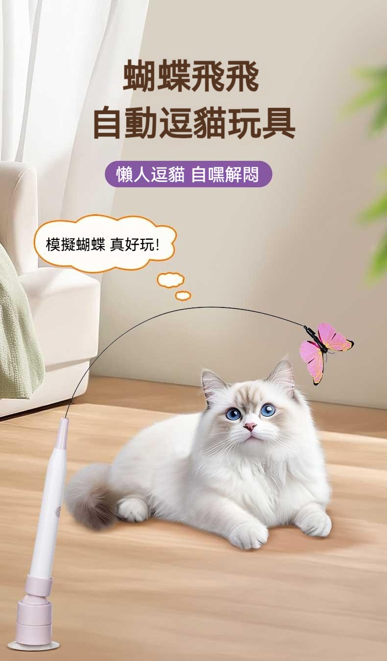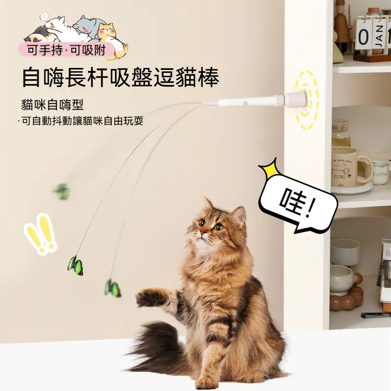 【懶人救星!】電動逗貓棒來啦~貓咪自己玩嗨一整天!✅ 仿真蝴蝶飛飛飛——貓咪瘋追超嗨,天然狩獵本能激活! ✅ 長桿吸盤超穩固——吸在玻璃、磁磚上都不掉,懶人免手持~ ✅ 靜音馬達不吵人 ✅ 充電式環保設計