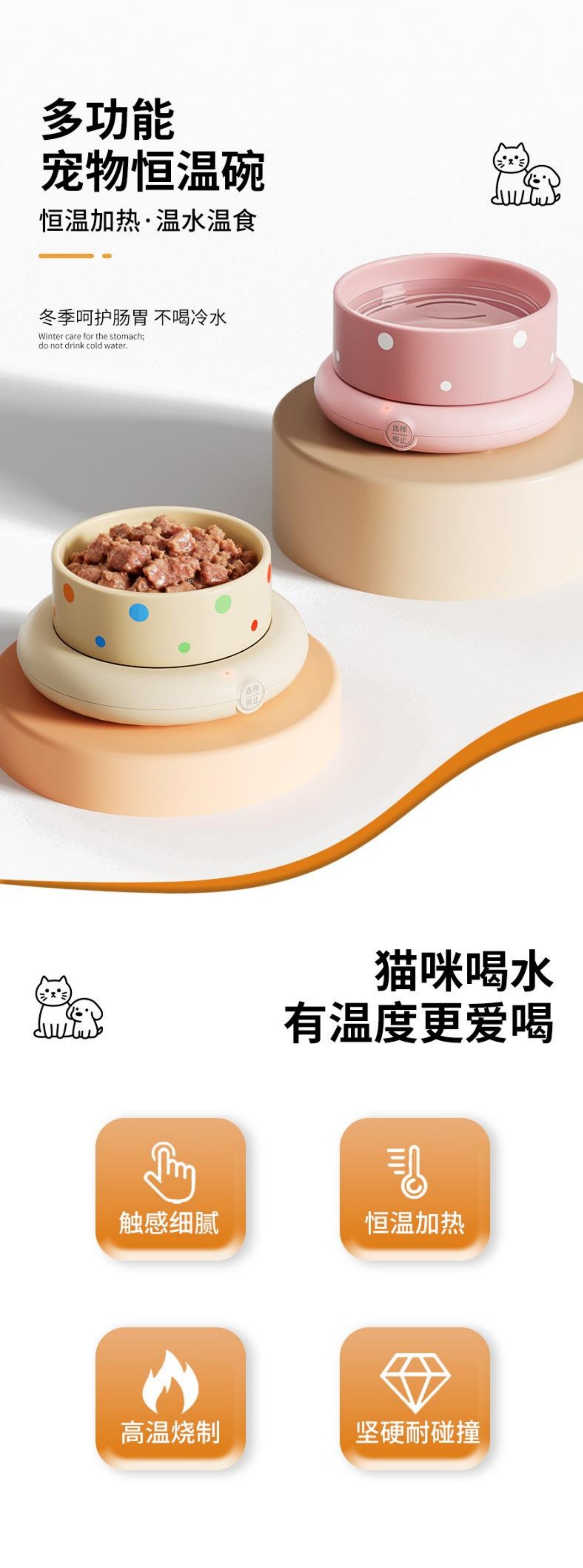 【四季燒燒的魔法泉】寵物恆溫水碗✅自動維持水溫✅多檔位可調節✅ 靜音運作✅ 食品級不鏽鋼內膽,抑菌好清洗