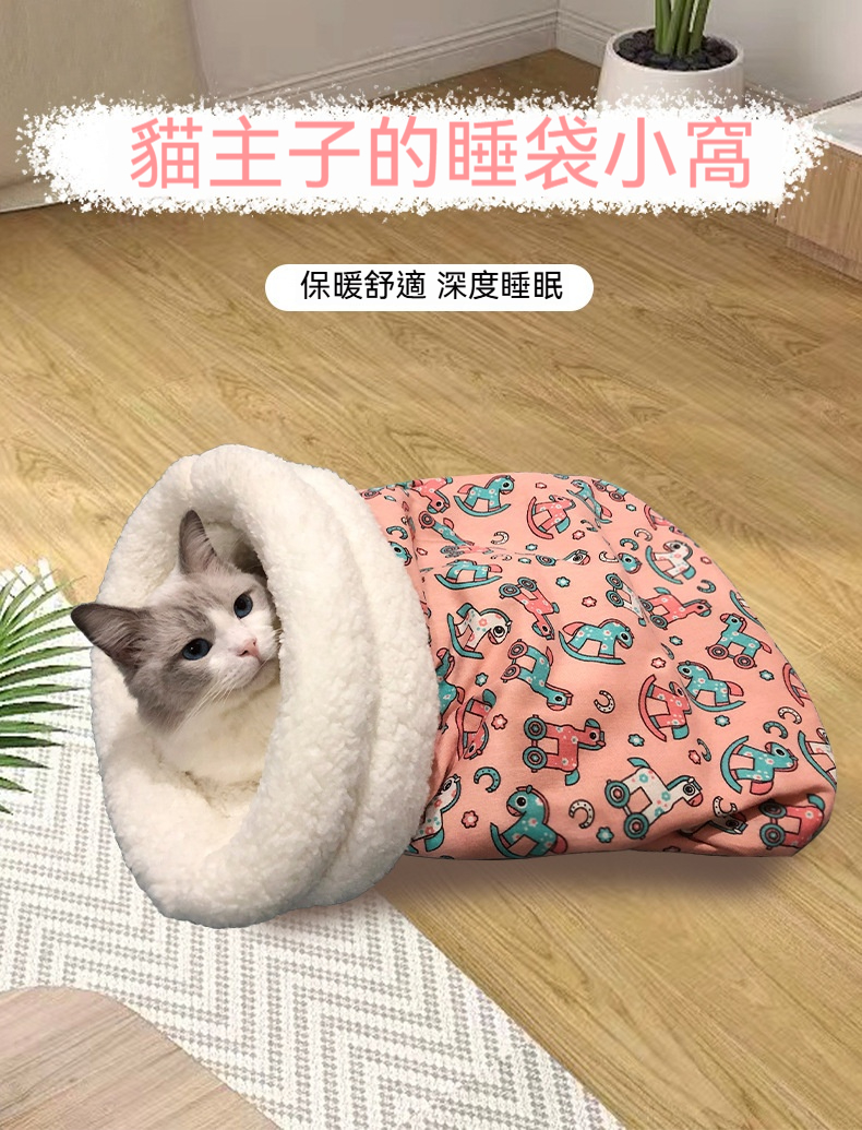 【 2025冬季最新款】麻布睡袋貓窩✅仿睡袋設計✅輕巧便攜✅羊羔絨加厚口袋型